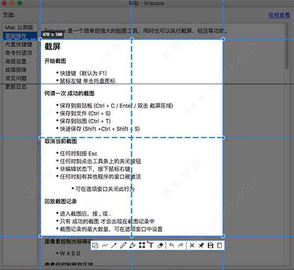 snipaste mac是一款应用在mac平台上的图像截屏工具,它可以做到自动检测界面元素区域、截图范围控制、历史记录回放以及像素级的鼠标移动控制等强大功能,如果您只把它当做一个简单的截图工具,那么您可能忽略了snipaste本身所具备的使用特色,它不仅能被用来当做临时备忘录和执行拼图操作,还能做相关资料整理归类、简易的剪贴板管理、录屏水印以及参考图教程,极大的提升了用户一体多用的功能体验。