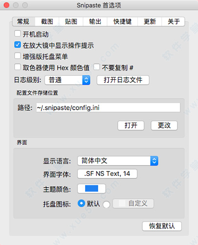五、选项太多了,不知道每个选项分别有什么作用。对大部分用户来说,第一次打开 Snipaste 后,将选项中的“开机启动”勾上,再根据自己的习惯调整一下全局热键,其他选项全使用默认设置即可。
