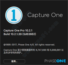 2、等待软件安装完成后运行软件,点击macos菜单栏中的软件图标,在弹出的下拉框中选择“关于Capture One 10”查看软件相关版本信息,出现下图代表软件成功破解激活使用;
