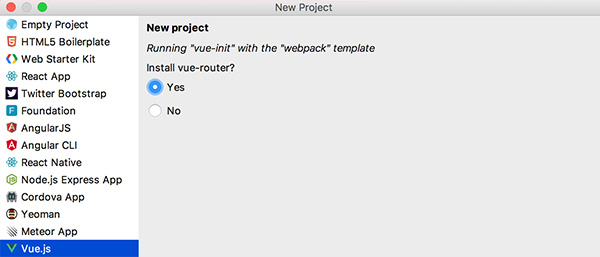 通过运行npm安装-g Vue -cli来安装它,然后按下创建新项目- Vue。js在IDE的欢迎屏幕上,并回答关于您希望在新项目中使用的模板和工具的问题。