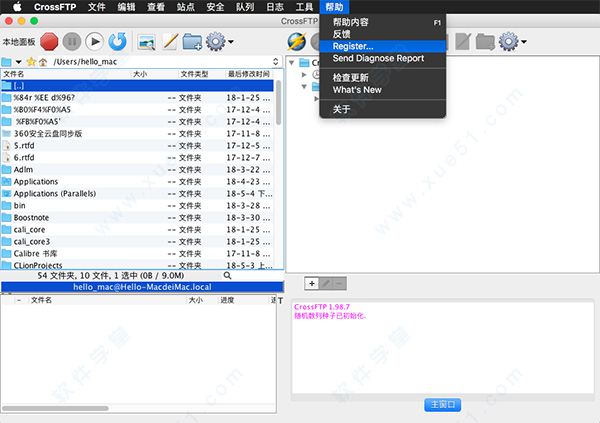 注:下载包中有crossftp for mac中文版安装包以及软件注册码文件,安装包在未使用时请不要轻易删除和更改文件类型。