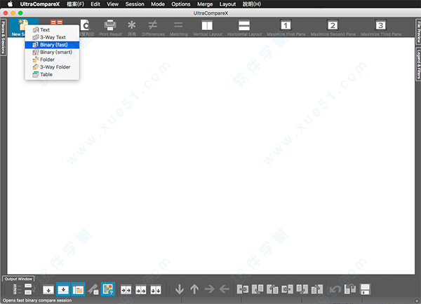 1、运行程序,在软件主界面点击“New Session”按钮,在弹出的下拉框中选择合适的文件类型进行对比操作;
