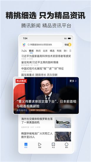 腾讯新闻app是由腾讯所推出的一款新闻阅读手机软件,用户可以通过这款软件来了解国内与国际所发生的各种新闻实时以及资讯,而且该软件也是每天24小时不间断的为用户提供最新最全的新闻。为了让用户能够阅读到最为优质的、全面的新闻资讯等内容,官方精心选择了上千家优秀的微信媒体以每天更新丰富的、高质量的阅读内容。