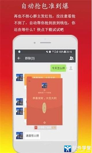 1、微信抢红包神器支持QQ、陌陌、微信等多个平台自动抢红包。