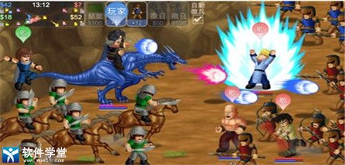 - 战争: 在战场上赚钱招兵、攻城夺营,与百人大战。