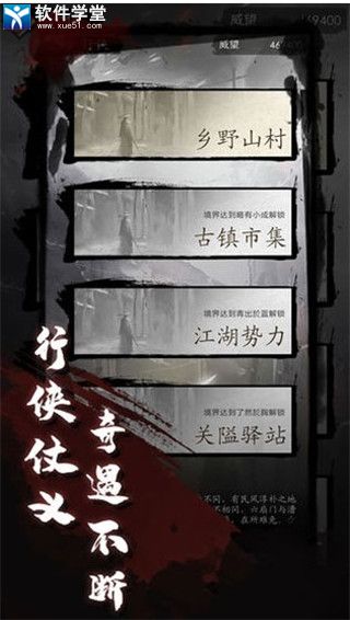 环游中原各地行侠仗义,习百家之长,不断提高本身实力人生境界,掌握磨练过程中的各种奇遇,给你的武学修炼之路一日千里。