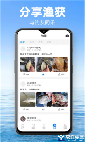 3、钓圈分享:钓友钓点、技巧、经验、心情分享,助你快速成为钓鱼高手,结识钓友。