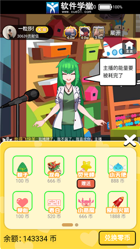 休闲类游戏。游戏以二次元的卡通形象来模拟出现实中的各种直播内容以及玩法(现在也有许多虚拟主播了呢!)。整个游戏的画面十分生动形象,你仿佛真的置身于这些二次元主播的主播间一样。玩家可以进入直播间与主播互动,还可以给他们打赏(当然打赏是游戏币)。成为榜一之后玩家就会拥有各种特权以及新的游戏功能。而游戏达成榜一之后并不是通关了,这只是刚刚开始,玩家需要建立一家属于自己的直播公司,招揽足够优秀的网络红人来为你的公司直播,与各大直播公司一较高下,一起在激烈的直播PK中取得胜利,获取最高的流量收益。