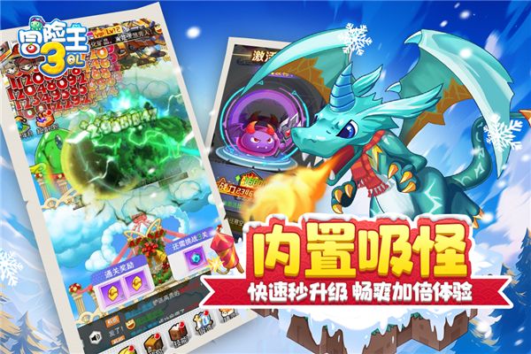 冒险王3OL属于冒险王系列游戏之下的又一全新作品,在这个神秘的大陆上,一群斗志昂扬的冒险家们,带领着可爱的精灵一起探索冒险,游戏在继承了冒险王2的经典玩法和游戏风格的基础上,还加入了一些全新的元素和玩法,它完美的还原了挂机吸怪的游戏玩法,并且游戏里的角色们都拥有非常Q萌可爱的形态,即使是实力超强的大boss们看上去也是非常可爱无害的,整个游戏就非常养眼和治愈。