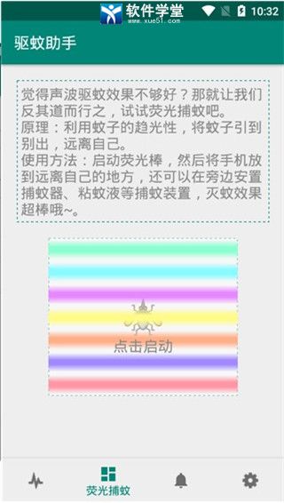 2、光亮驱蚊:将手机放在远离自己的地方,利用蚊子的趋光性,通过各色荧光灯吸引蚊子,远离自己。