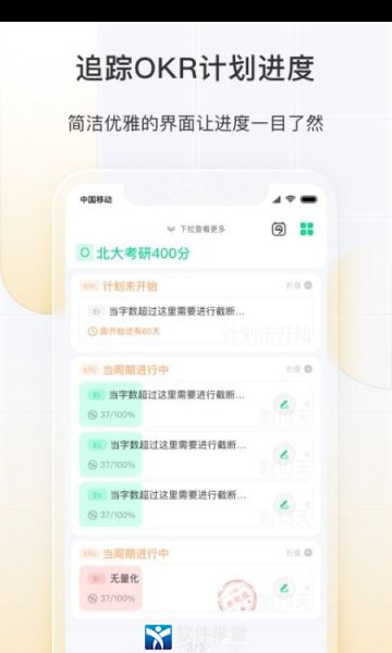 4、通过OKR理念帮助你更好地分解目标、制定计划、高效执行,“坚持长期主义”,让你的成长更清晰可见。