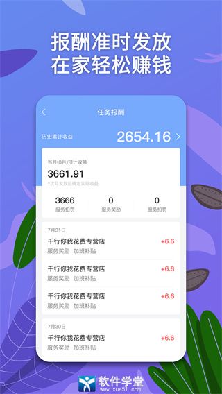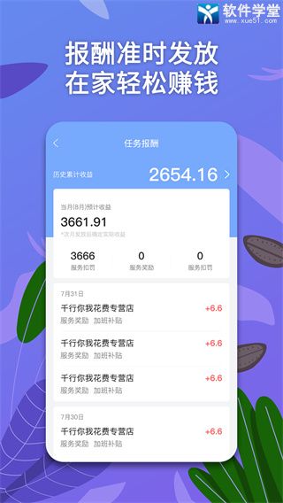 2、为您记录收益的金额以及服务的人数数量。