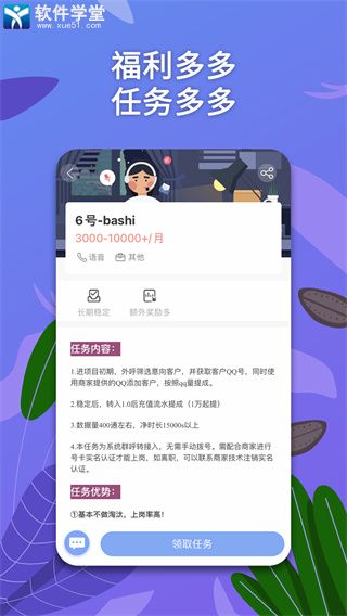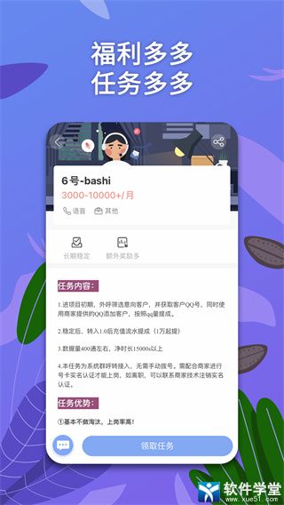4、所有客服的任务都是长期的,可以保证自己的稳定收益,而且平台每天都会更新任务,任务量比较稳定,同时薪资也是准时发放的。