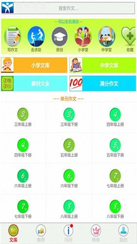 2、精准化搜索,根据年级和单元智能匹配推荐所需的相关优秀作文。
