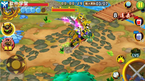 1、经典摇杆+必杀技+军师技能+一键变身,轻松过关;