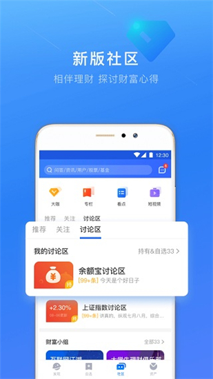 蚂蚁财富app手机版是一款支付宝旗下的理财应用平台,主要为我们广大金融投资爱好者独家精心研发打造而来,软件的界面十分的精简美观,各个功能都分布排版的极为的妥当直观,能够使得的大家快速的上手进行使用,且它的功能强大实用,可联合2265用户使用同一个账号进行一键登录,上线即可在这里随意的对余额宝、基金、存金宝等理财进行投资,且拥有市场行情、财经资讯、社区交流等多个功能,能够使得大家随时随地的去了解到金融行业中的行情状况,非常的不错。