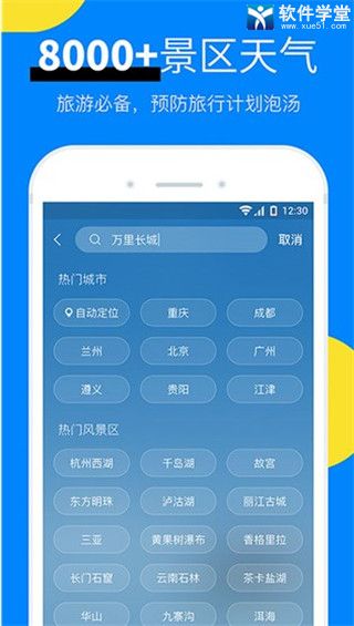 2、丰富天气信息:实时天气数据、未来24小时天气预报、15日天气预报、空气质量指数、空气污染指数、pm2.5、风力、温度、湿度、日出日落、气压、能见度。