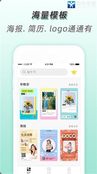海报制作软件,都说设计难,设计累,但其中只要我们用对了工具,其实就能大大的减轻我们的精力,如果你也还在每日加班改稿,怎么也做不出甲方想要的成果,那么不妨来试试本款应用吧,这里拥有市面上百分之八十以上的设计模板,能够让你直接通过插图的简单操作,轻轻松松就制作设计出各种风格炫酷新颖的海报、日签、封面、名片、logo等门面设计,大大减轻工作的时间,更为高效的进行工作,非常的优秀好用,且软件内的所有模板都可支持商用,拥有版权会更加的放心,安心,不仅如此,还等什么呢,有需要的不妨来这里下载尝试一下吧~