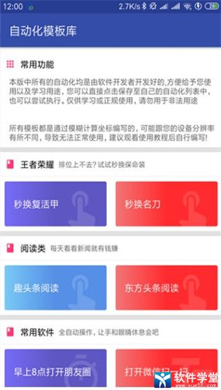 1、将复杂的动作组合,然后一键触发(蚂蚁森林收能量等)。