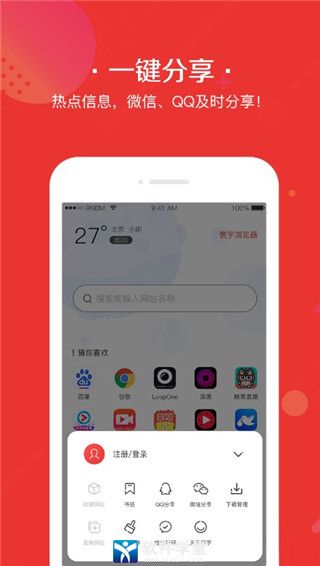 2、【扁平设计】贴心布局,强化搜索,多页签切换极致为用户提供简单、安全的浏览体验。