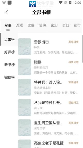 7、涵盖所有免费小说、宫廷战斗言情小说、有声小说、名著推荐。