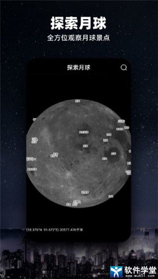 4、moon月球不仅有3D月亮可以任意旋转放大缩小,还可以根据月亮的地名进行搜索。