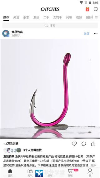 1、在本站下载并安装软件后打开,注册登录后进入软件首页,在首页可以看到系统推荐的各种视频、资讯和钓友分享;