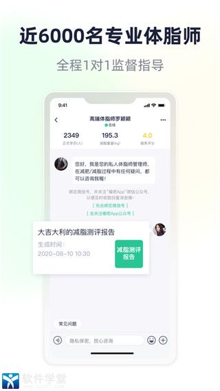 2、专业体脂师一对一指导,提供个性化的健康减脂方案;