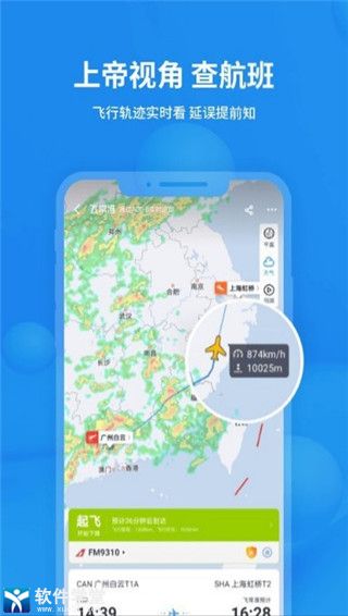 1、查航班:全球航班信息秒级更新,实时飞机轨迹追踪,延误提前知晓。