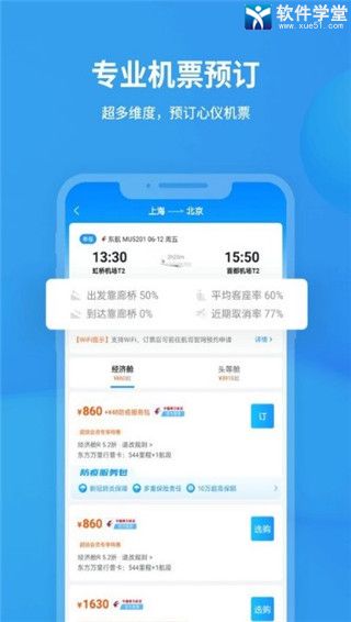 4、机票预订:更多可选维度,专业旅客选择,直达票更放心。