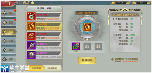 5、3星以上诛仙套装装备可锻造成弑神套装。