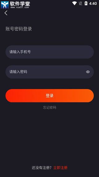 2、只需输入手机号、密码进行登录即可,没有帐号的用户可立即进行注册;