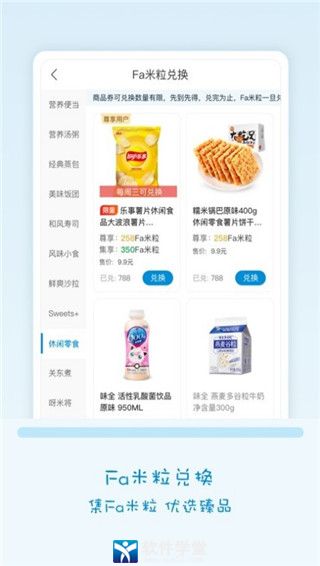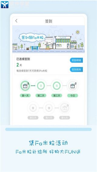 5、新人注册、签到、限时活动及线下消费皆可获得Fa米粒,Fa米粒可在app内兑换超值商品券。