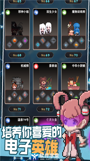 1、招募动漫中的英雄角色,他们将会助你消灭各种邪恶力量,等你来统治这个奇异的世界。