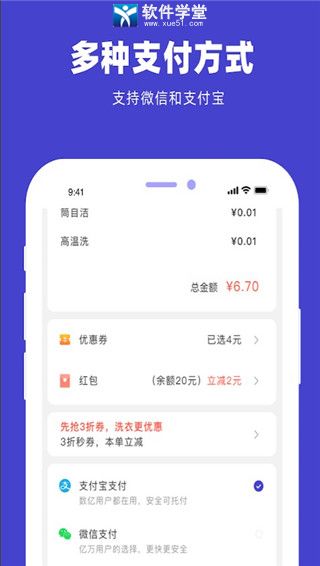 微信等多种付款方式,可以为忙碌没有时间的用户带来便捷的衣服服务,软件还有多种选项供大家选择,大家可以直接的选择自己需要的来使用,操作也非常的简单。今天小编为大家带来了