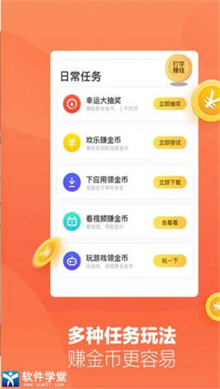 2、打字也能赚钱,打的越多赚的越多,还有丰富的每日任务和小猪储蓄罐等活动让你躺着也能致富。