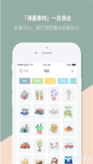 2、海量手绘精美素材随便贴。