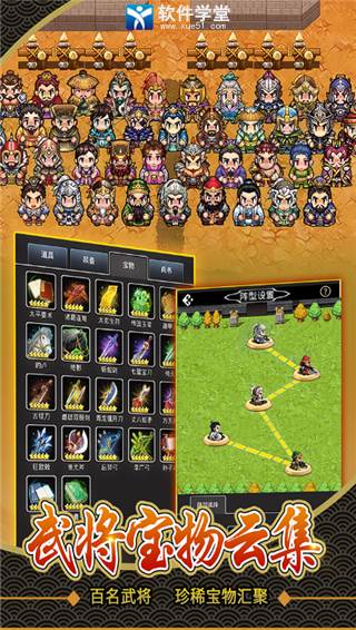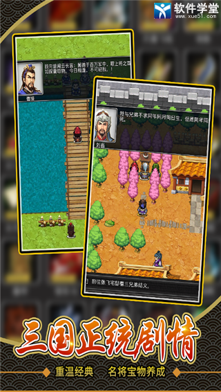 仙国志是一款非常经典的三国角色扮演游戏,游戏完美的还原了三国的历史,整体采用了复古的像素风格,将所有的三国武将都Q萌的呈现给玩家眼前,各种经典的历史你都能亲自参与。游戏中每个宝物和武将都是独一无二的,玩家只可以获取一次,如果玩家获取了就不能再重复获取。这些宝物和武将的属性也不同,每一位武将都有独特的专属技能,宝物也有唯一的玩法设定。当然,游戏也在最大程度上,还原了三国的经典剧情故事,构建了一个庞大的三国世界。