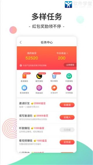 5、听歌红包,听歌可以赚零花,随听随赚,福利多多。