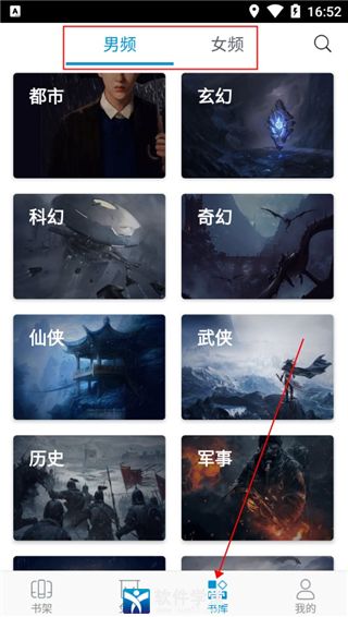 3、进入书库,可以看到分类齐全的各种小说资源。