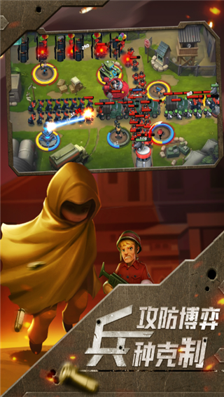 塔防游戏,游戏以战斗为题材,在画风上则是采用了Q版的画风,人物角色Q萌可爱。在游戏中玩家可以选择一位角色 进行游戏,每一位警觉都有着各自的特色,技能炫酷无比,动作真实流畅没有一点僵硬感,绝对让你爱不释手!游戏中还有200多个地图关卡,难度玩 法各具特色,非常的具有策略性。此外游戏在塔防的基础上还加入了,兵种之间的克制关系,玩家需要合理的排兵布阵,运用不同的克制兵种来应对 敌人技能丰富有趣,快来打败入侵的敌人,守护自己的基地吧!本次小编为大家带来的是