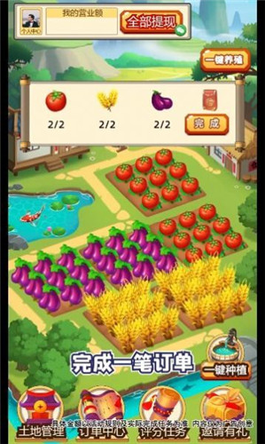 田园小院红包版,相信这款游戏可能很多小伙伴都听说过,曾经该游戏的广告推广还是有一定影响的。游戏中主要的玩法还是经营农场,玩家进入游戏有一片属于自己的小农场,你需要的就是将自己的农场不断扩大并种植一些能带给自己更多利润的农作物,以此来维持你的农场正常的运作,大家都知道种植农作物需要肥料、环境等其他因素才能让他们健康成长,在田园小院中一样需要大家为农作物进行灌溉,通过这些操作让我们的农作物变得更加饱满,不然的话农作物就会坏掉或者在你销售出去会影响你的价格,并且在你种植农作物的同时还会随机掉落红包奖励,里面金额从几毛到几十块不等,而且当你完成相应的任务还能领取额外的大红包哦!让你在休闲娱乐的同时还能赚取零花钱,非常的不错,对此有需要的小伙伴快来下载试一试吧!