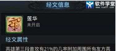注解 :莲华经文的效果,类似于罗睺经文,如果对它不怎么理解的话,你可以把他当成另一个罗睺经文,他和罗睺经文的效果相差不多。罗睺经文是释放技能后,下一次普攻附带自身物理强度+ 法术强度之和 16.5% 的法术伤害。而莲华经文,是第三段普攻 21% 几率附加周围所有友方英雄物理和法术强度之和 0.5% 的伤害。