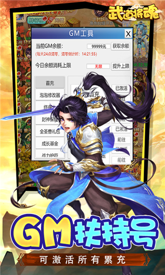 1、上线送扶持工具,免费激活首充!GM工具可激活线上所有特权卡!还有全圣兽礼包免费拿!