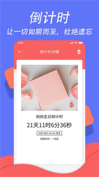 可以帮助你记录、提醒生活中各种重要的日子,节日提醒、生日提醒、纪念日提醒等。