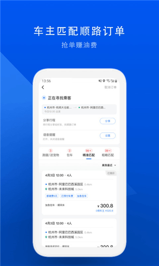 打车软件,它主要是为人们提供一个快速便捷的出行服务,在这个应用中我们也能够选择乘坐出租车、拼车和快车。软件使用操作简单,我们只需输入上车地点和目的地即可一键打车,会有附近的司机进行快速的接单,将你快速的送到目的地,让你出行更加的便利。车主发布线路信息,配对线路旅客,线上抓取订单,与他人一起拼车出行,共同承担车钱降低经济压力。实施智能化行程安排配对,让车主和途中乘客共享车辆行程,阶梯计价,越远越优惠。此外,顺风车软件还可支持用户在手机上预约打车出行时间,用户可自由选择上车地点,合理有效的提高了车主和广大用户的出行需求,使用起来非常方便。安全升级,亲友护航、一键报警,让您出行无忧。