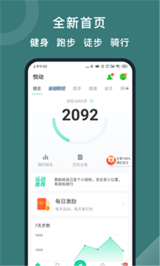 每日健走、共享骑行、团队印花完成运动目标就能领红包。