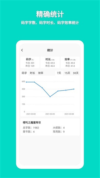 统计每天码字数、码字时长、码字效率。