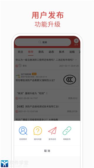 消防百事通app是一个非常更专业的消防知识共享服务平台,在这里不但包含了众多丰富多样的行业资讯信息、产品、技术、文库、消防题库等资料版块,还拥有互动问答、旺财等交流业务以及更多商机和人脉资源的实用工具。使用后不仅可以轻松帮助各位用户了解掌握各种各样的救护援救技能,还可以学更多专业的消防知识、政策法规、技术知识。同时我们还能够明确提出有针对性的难题,并通过积分奖励体制来发动其他用户们一起参与回答。全新的提问题的搜索模式,可完美实现消防资源共享,消防知识一同学习的目标。除此之外,此软件还内置了多种行业的人才招聘信息,为广大用户们提供了相关技术人员在线进行求职、招聘等服务,您也可以在旺财需求中发布你的其他各种需求信息。总的来说,消防百事通软件是消防爱好者、行业专家、工程公司、维保检测单位不可或缺的软件应用。