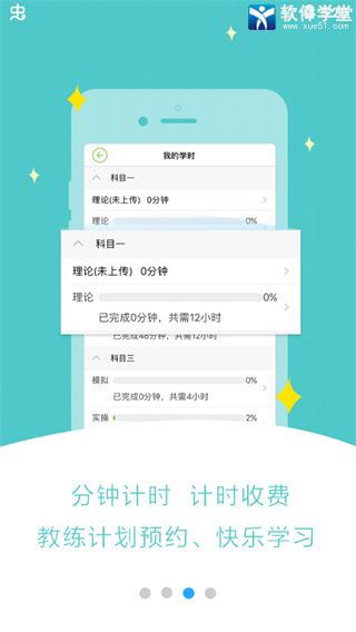 8、开放厦门地区理论计时模式,学时可以直接在APP上面进行打学时,并可以查询我的学时,我的教练等信息。